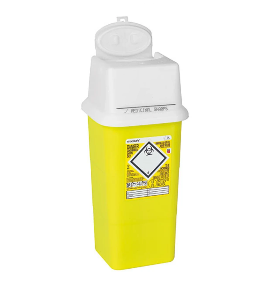 De Sharpsafe naaldencontainer kan gebruikt worden om veilig gebruikte naalden en insulinenaalden in weg te werpen.